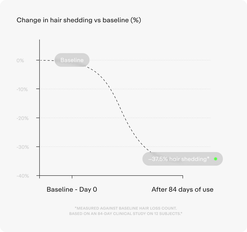 - Within 84 days: 37.5% reduction in hair shedding*