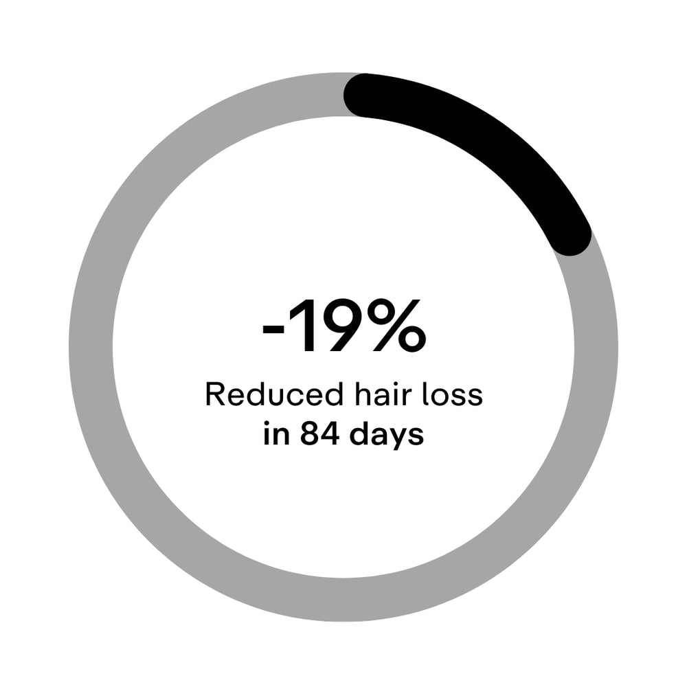 Une réduction de la perte de cheveux : Après 84 jours, on a pu observer une réduction significative de 20 % de la perte de cheveux par rapport au début de l'essai.